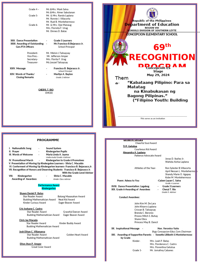 Kindergarten XIX. Grade 6-Awarding of Awardees - Cheryl T. Rio
