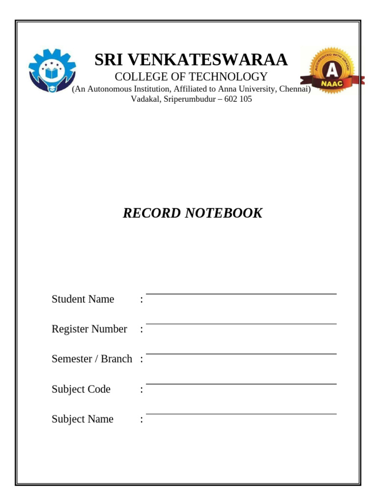 (An Autonomous Institution, Affiliated to Anna University, Chennai)