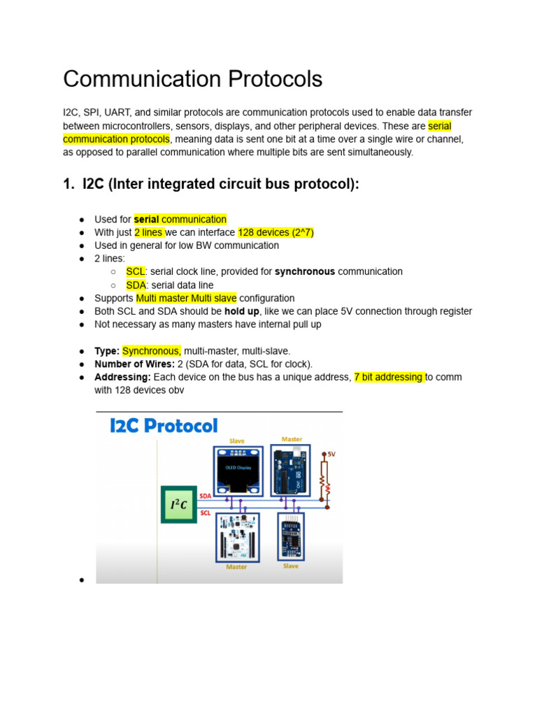 1. I2C (Inter integrated circuit bus protocol):