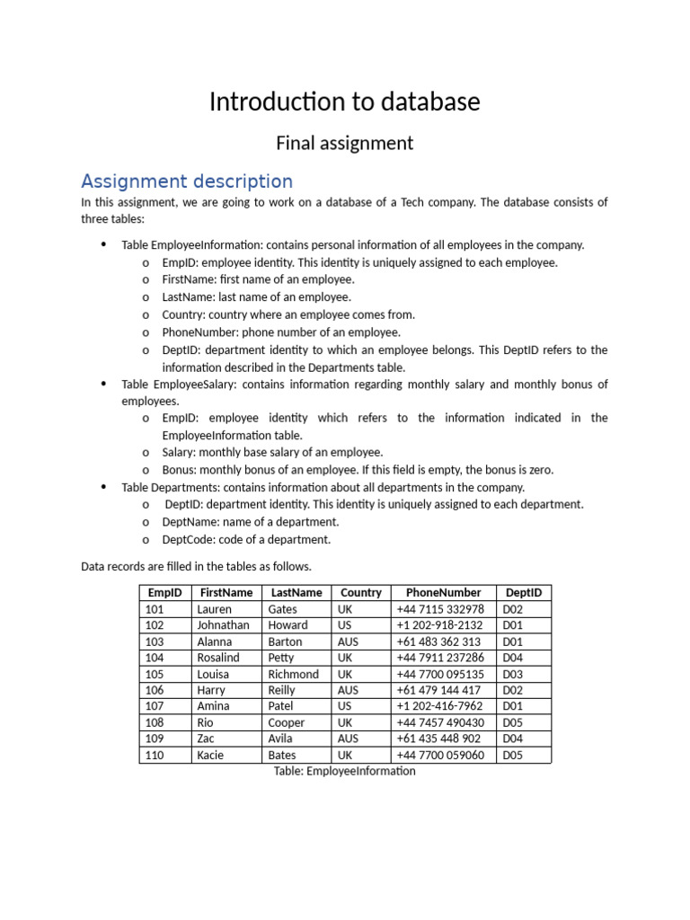 EmpID FirstName LastName Country PhoneNumber DeptID