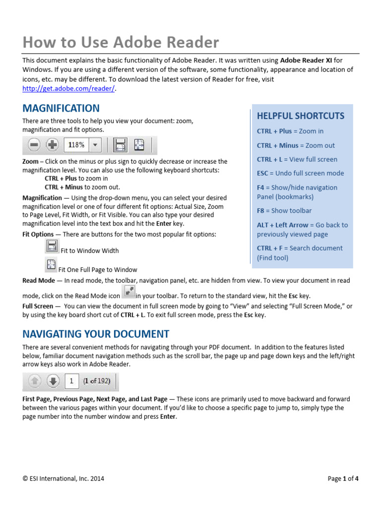 This document explains the basic functionality of Adobe Reader. It was written using Adobe Reader XI for