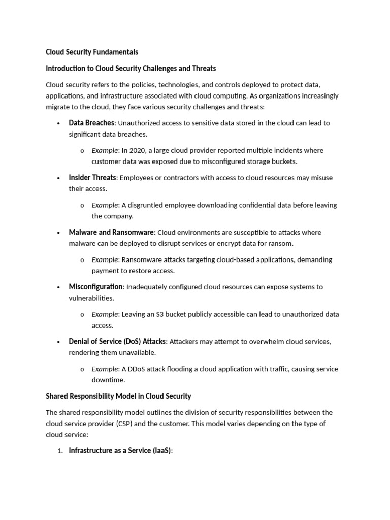cloud service provider (CSP) and the customer. This model varies depending on the type of