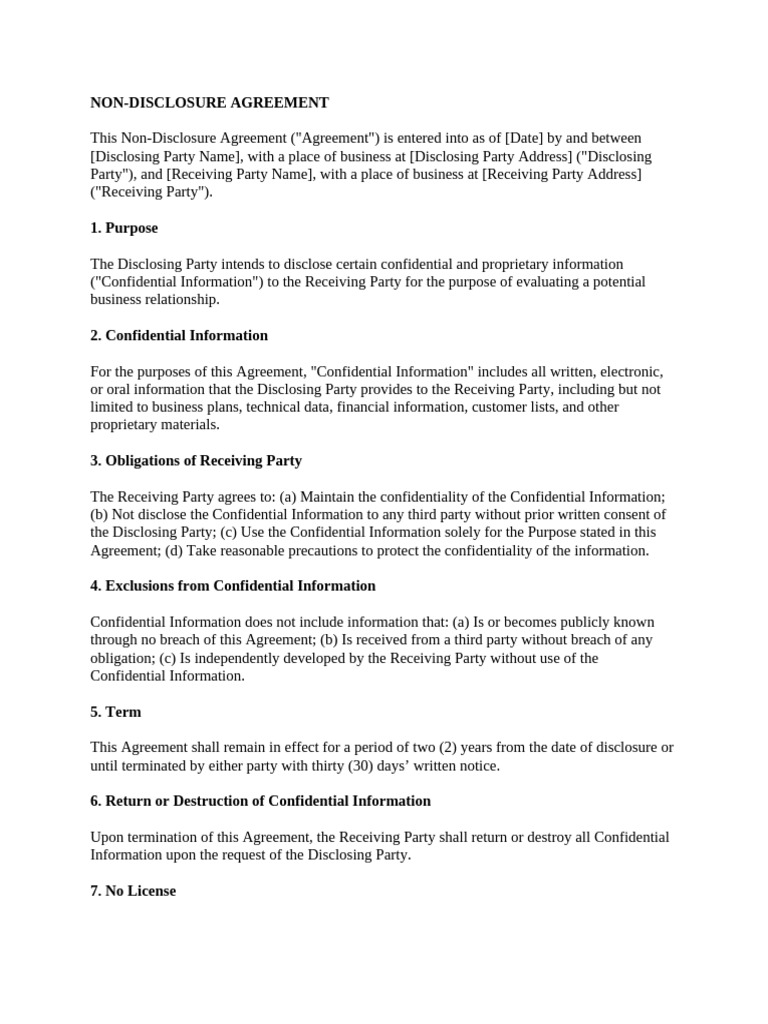 ("Confidential Information") to the Receiving Party for the purpose of evaluating a potential