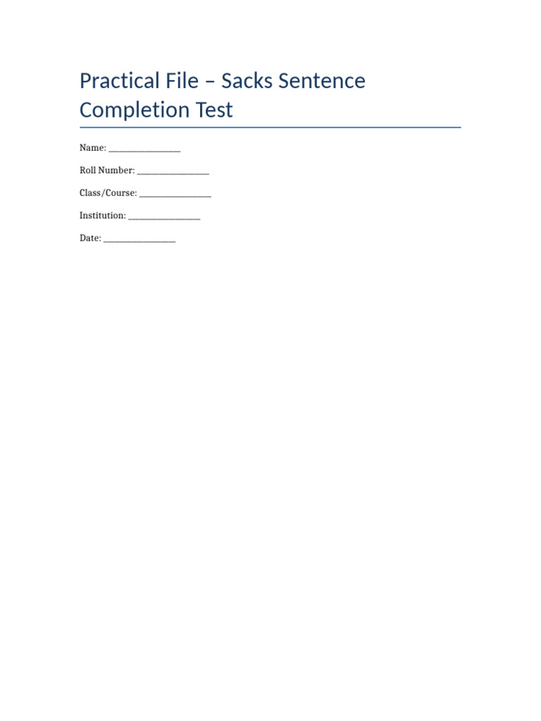 The Sacks Sentence Completion Test (SSCT) is a projective psychological test developed by
