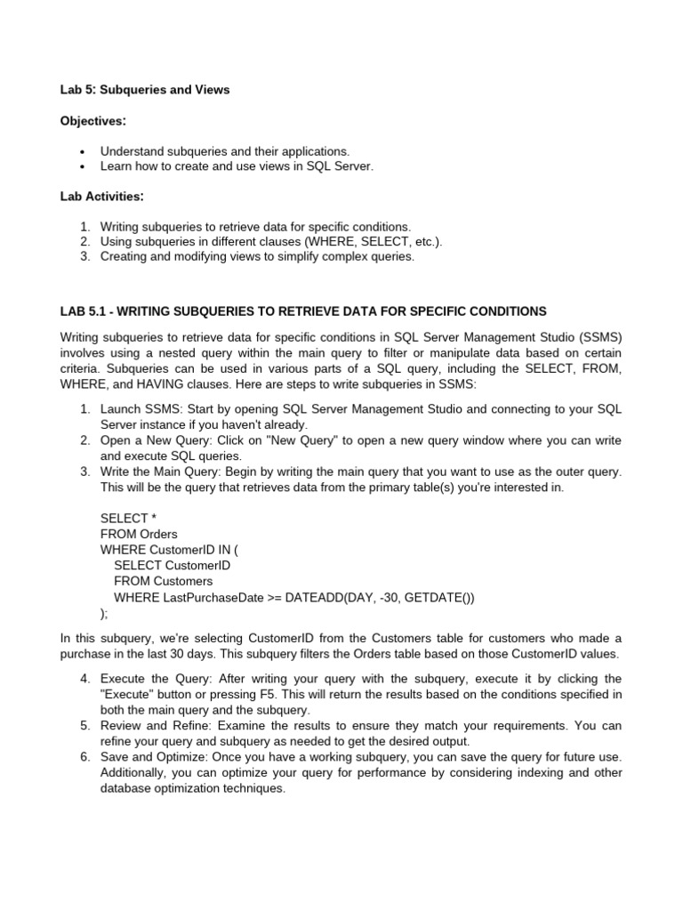 WHERE, and HAVING clauses. Here are steps to write subqueries in SSMS: