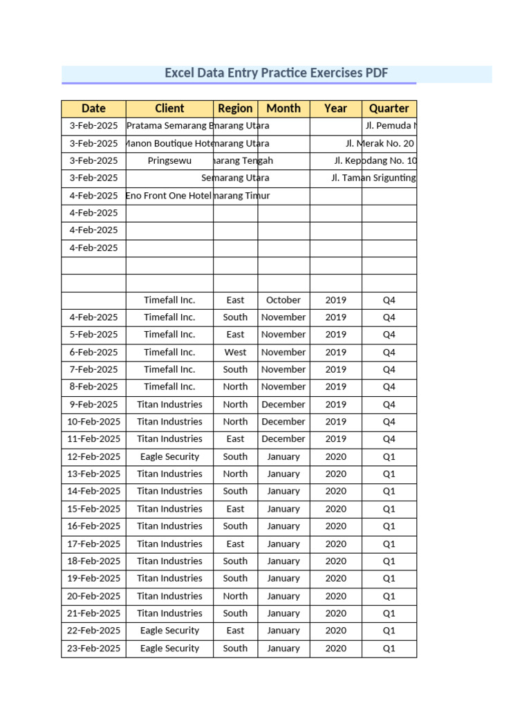 Excel Data Entry Practice Exercises PDF