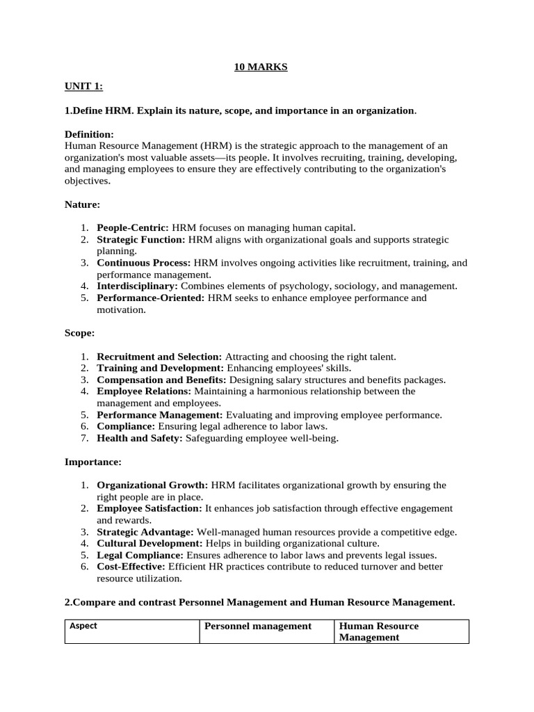HRM Sem 6 10 Marks