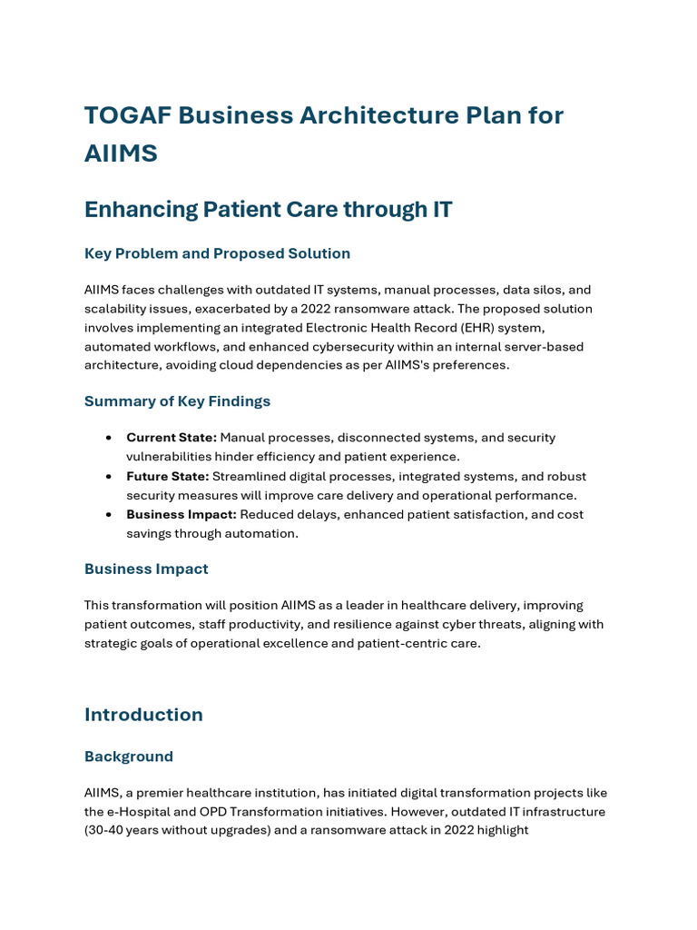 This Business Architecture Plan focuses on patient registration, clinical workflows,
