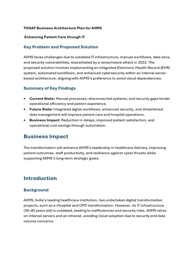TOGAF Business Architecture Plan for AIIMS