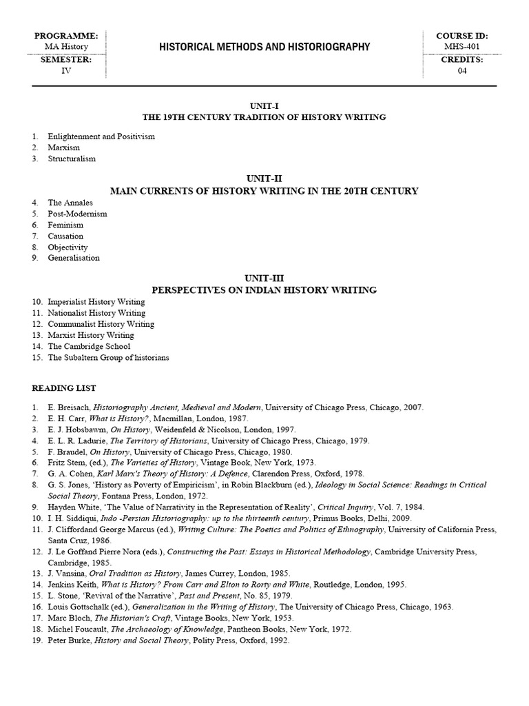 1. E. Breisach, Historiography Ancient, Medieval and Modern, University of Chicago Press, Chicago, 2007.