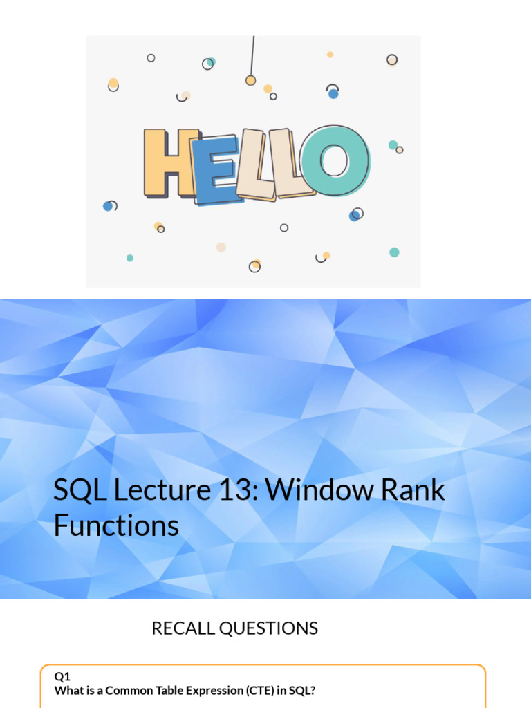 SQL Lecture 13: Window Rank