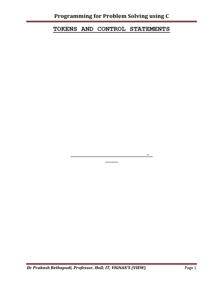 Tokens: All tokens, operators and expressions, type conversions in C. Input and Output: