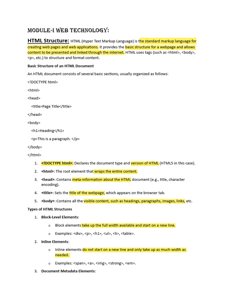 closing tag, although some are self-closing. Here’s a brief overview of common HTML tags and their