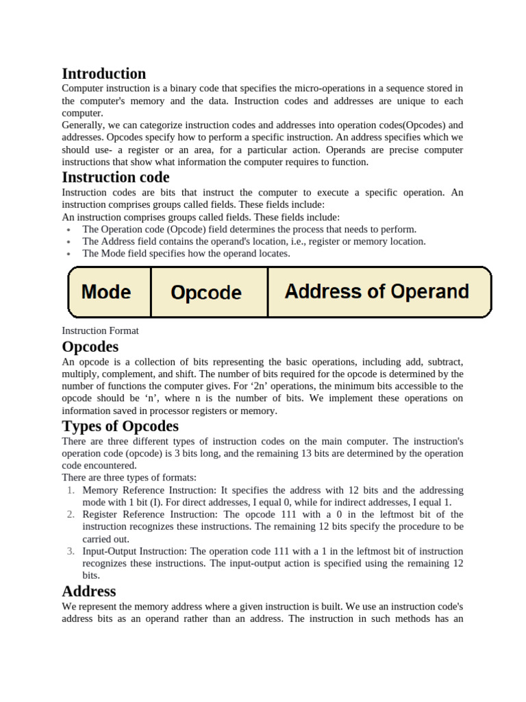 Ans: An instruction code is a sequence of bits that tells the computer how to do something. An