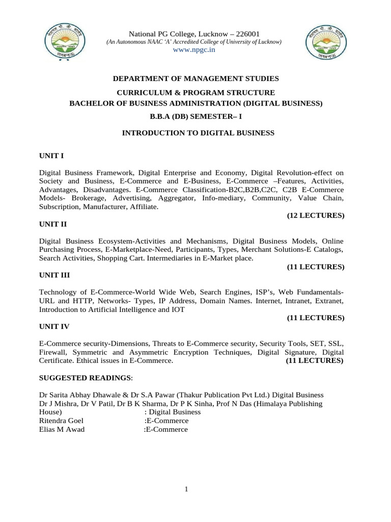 NPGC BBA DB Syllabus