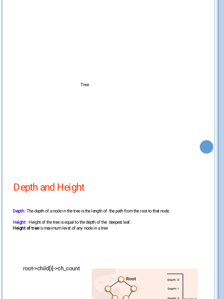 Depth: The depth of a node in the tree is the length of the path from the root to that node.
