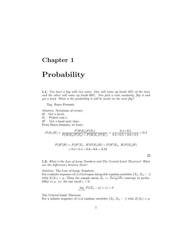 1.1. You have a bag with two coins. One will come up heads 40% of the time