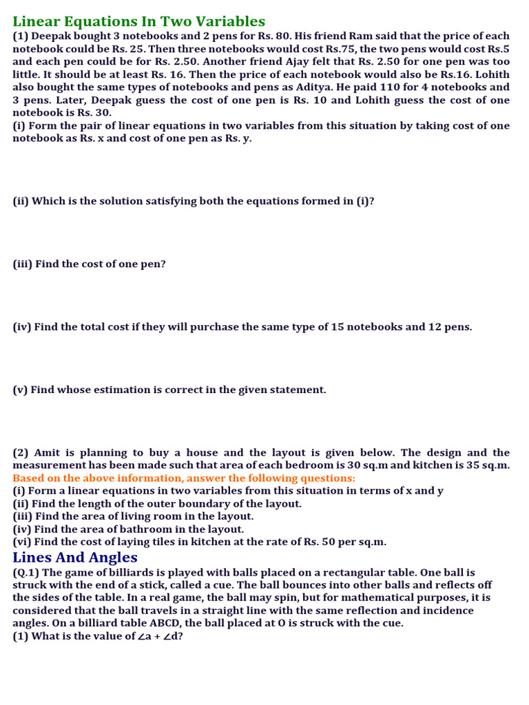 (1) Deepak bought 3 notebooks and 2 pens for Rs. 80. His friend Ram said that the price of each
