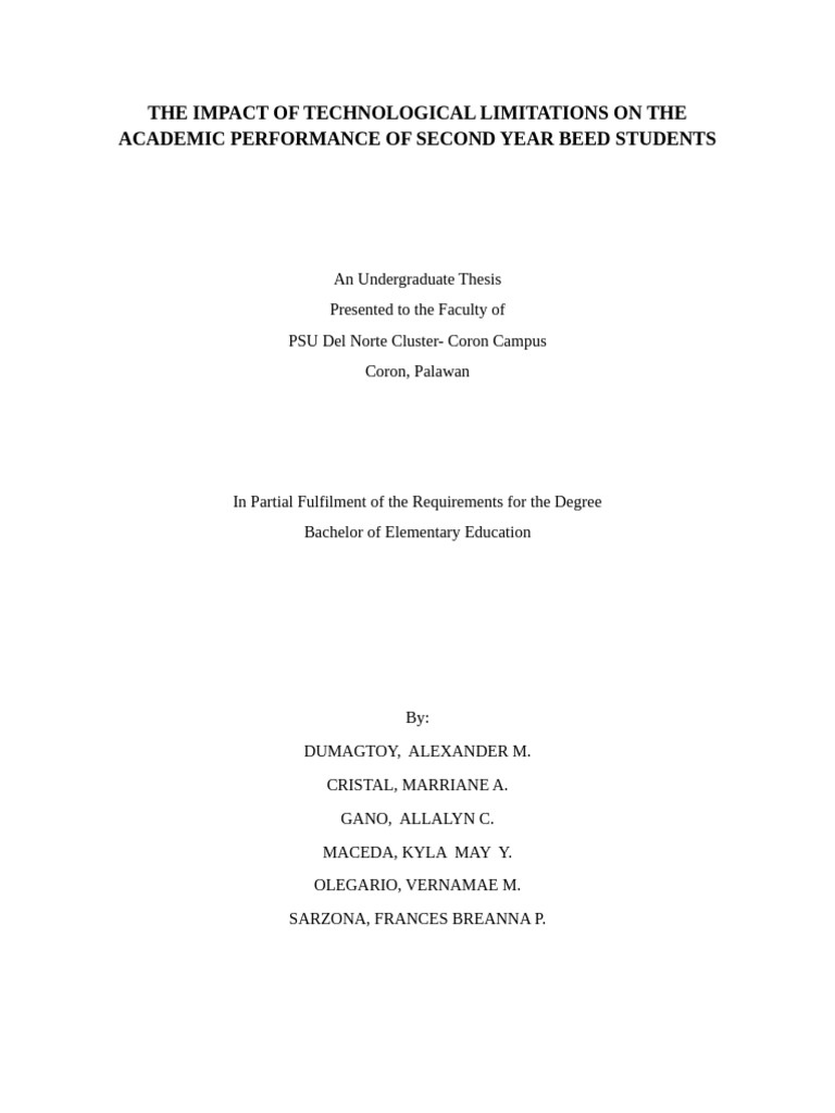 The objectives of this study is to determine the technological limitations that Second year