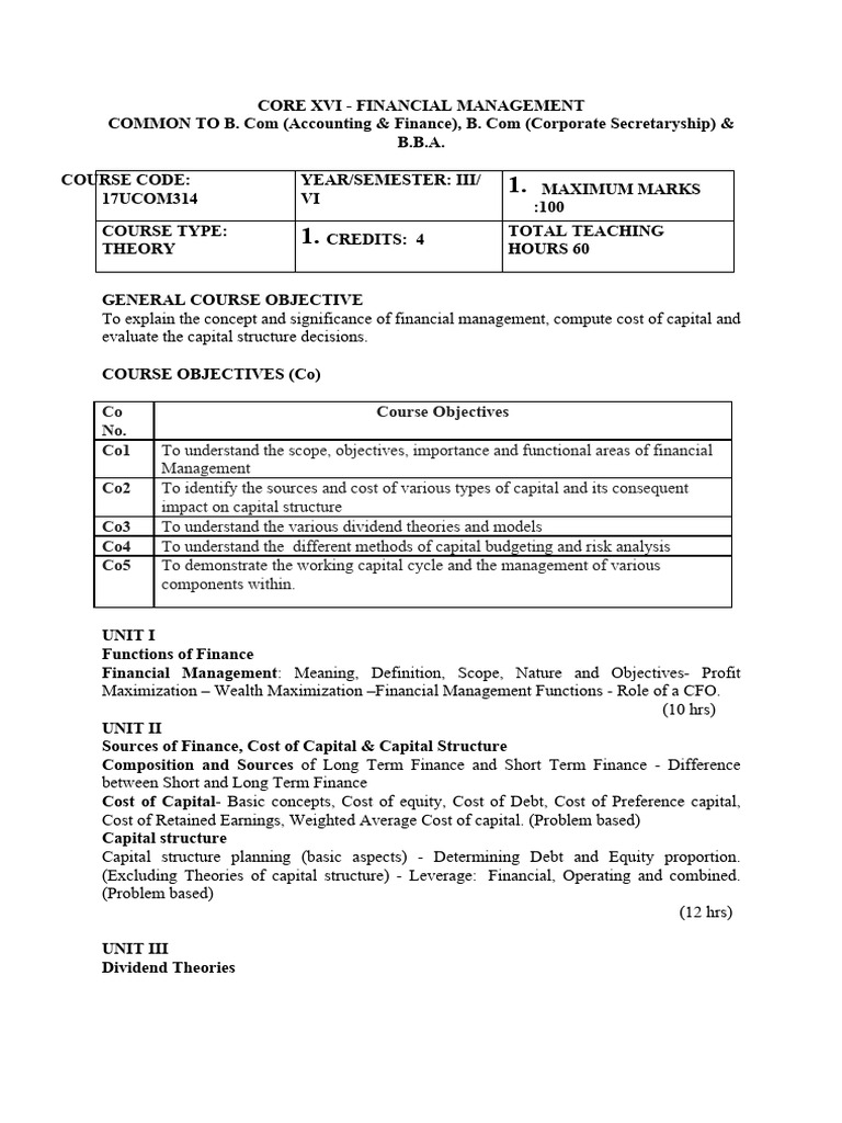 Co1 To understand the scope, objectives, importance and functional areas of financial