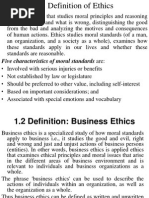 1. Code of conduct : Business ethics is a code of conduct. It tells what to do and what not to