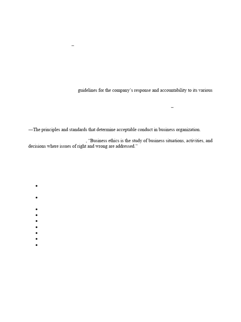 immoral or what actions are right or wrong in the operations of a business with respect to
