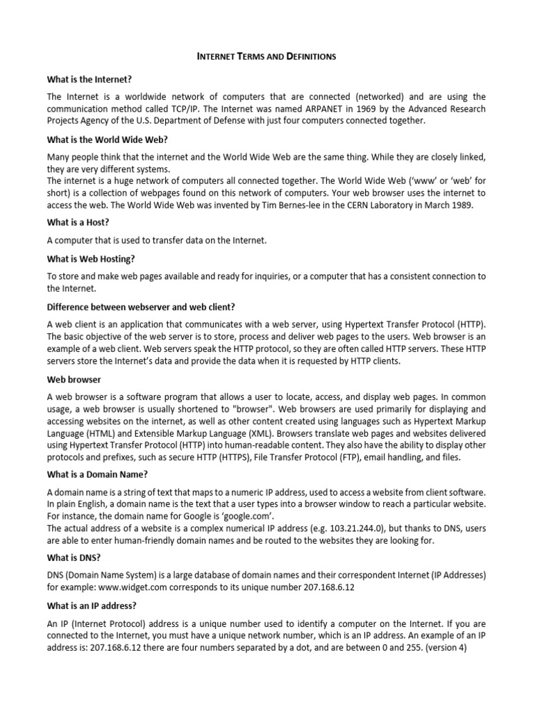 The Internet is a worldwide network of computers that are connected (networked) and are using the