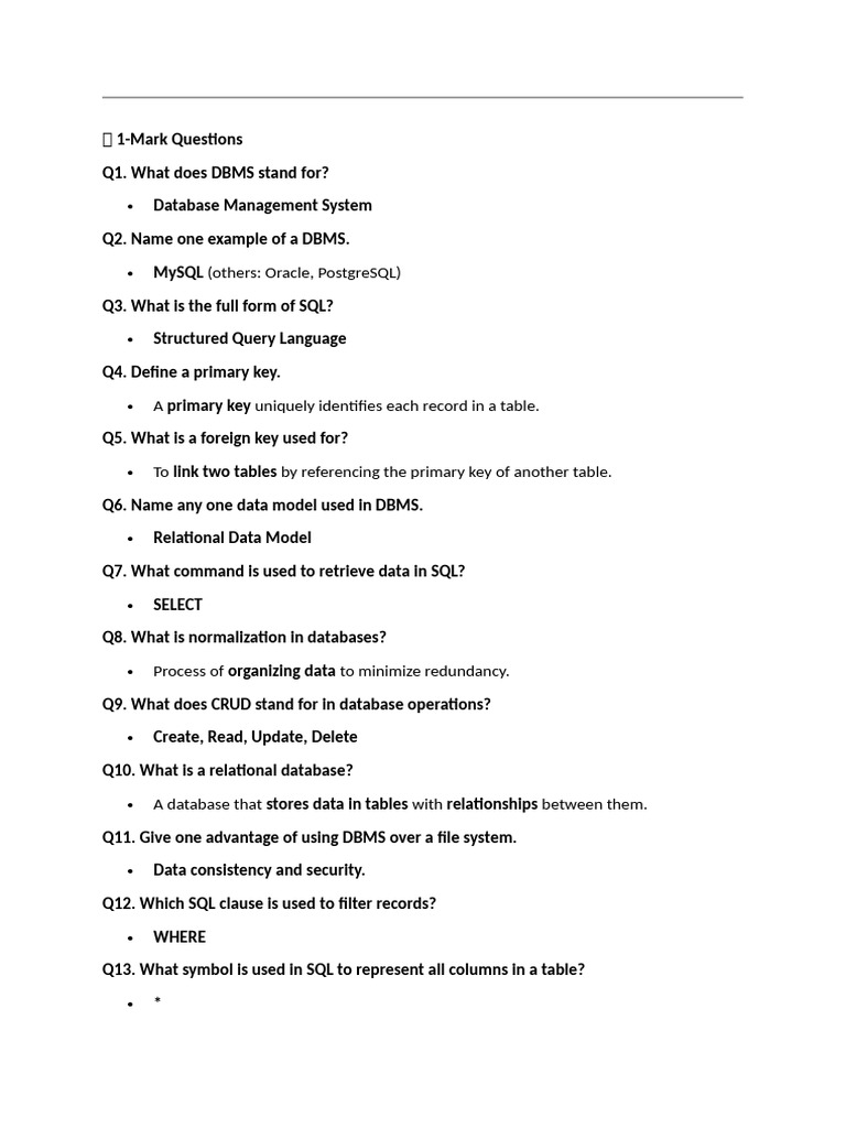 Primary Key: Unique identifier of a record. (e.g., StudentID in Students table)