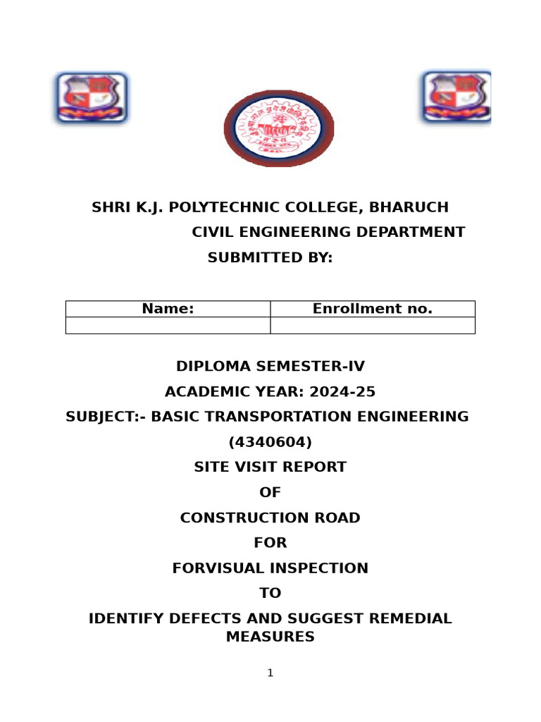 of this report on Road Defects.First and foremost, I