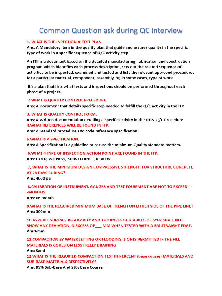 PDF Common Question Ask During QC Interview PDF