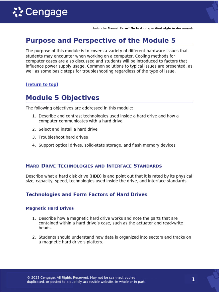 The purpose of this module is to covers a variety of different hardware issues that