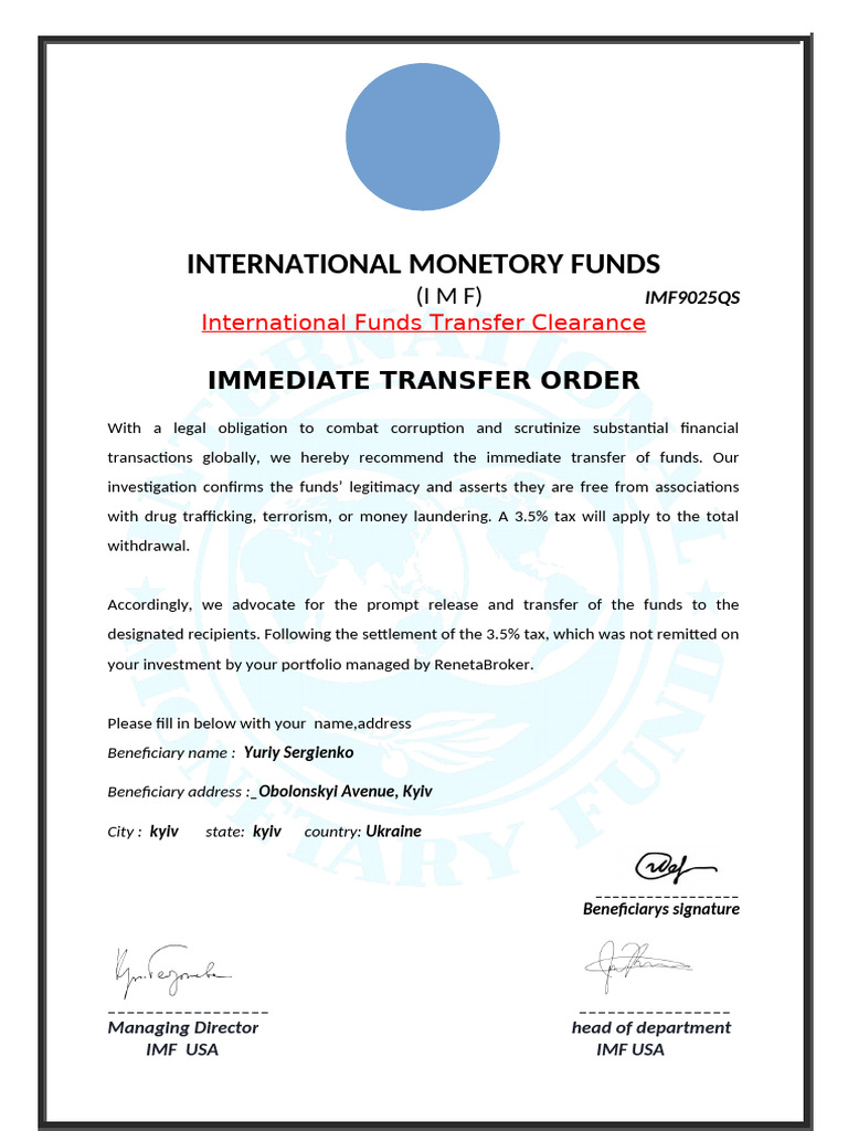 Beneficiary address :_Obolonskyi Avenue, Kyiv