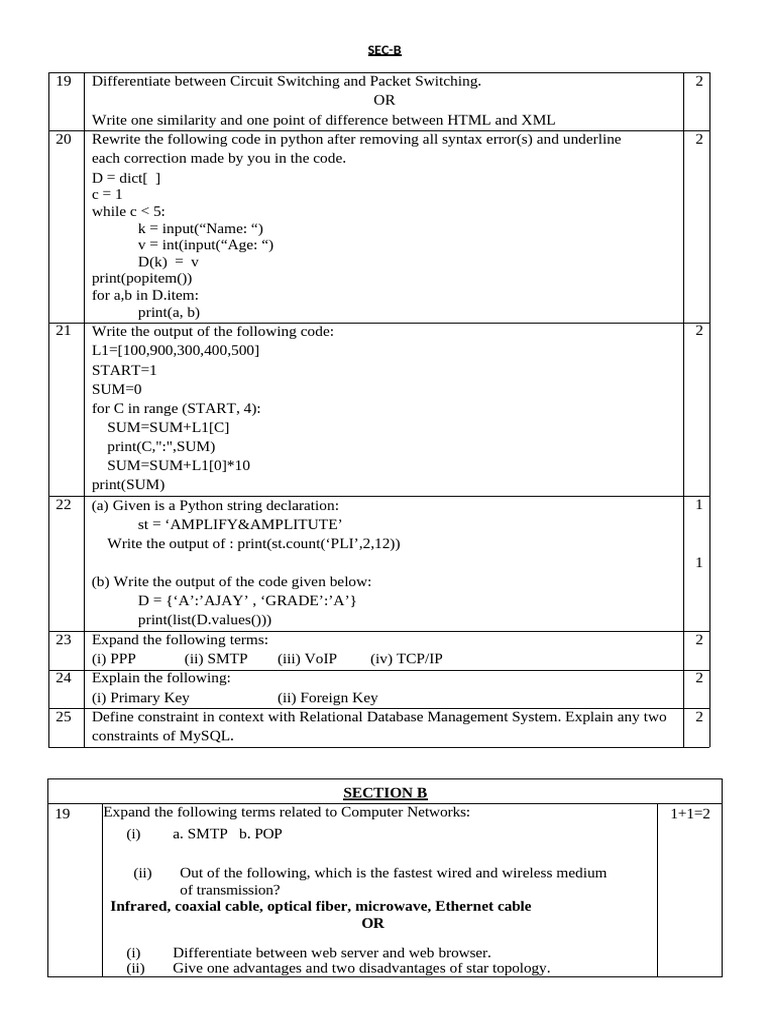 23. (a) Write the full forms of the following: (i) VoIP (ii) IMAP (1)