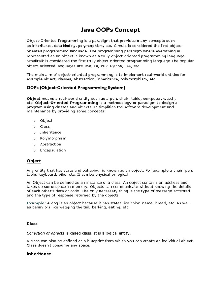 o Object-Oriented: In Java, everything is in the form of the object. It means it