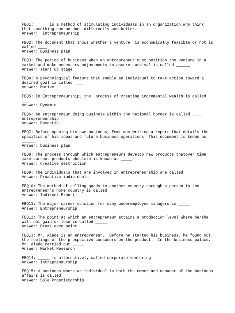 FBQ7: Before opening his own business, Femi was writing a report that details the