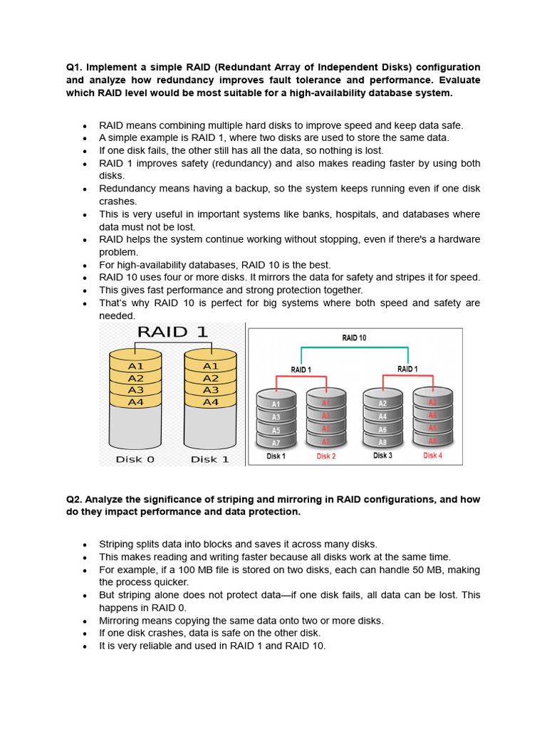 Q2. Analyze the significance of striping and mirroring in RAID configurations, and how