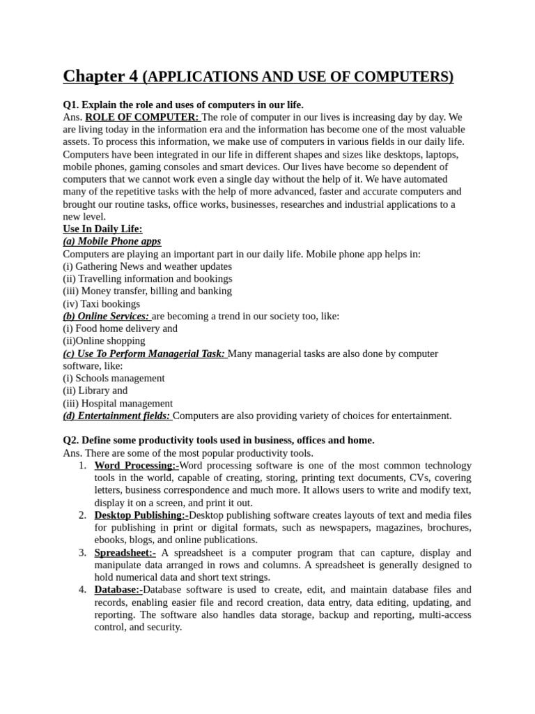 Chapter 4 (APPLICATIONS AND USE OF COMPUTERS)