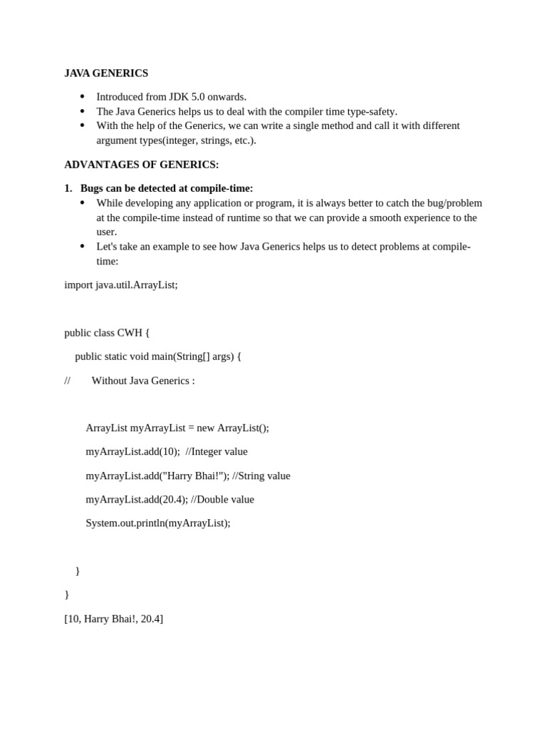 But, this is not the case with the Generics. It allows us to store only one type of object. Take a