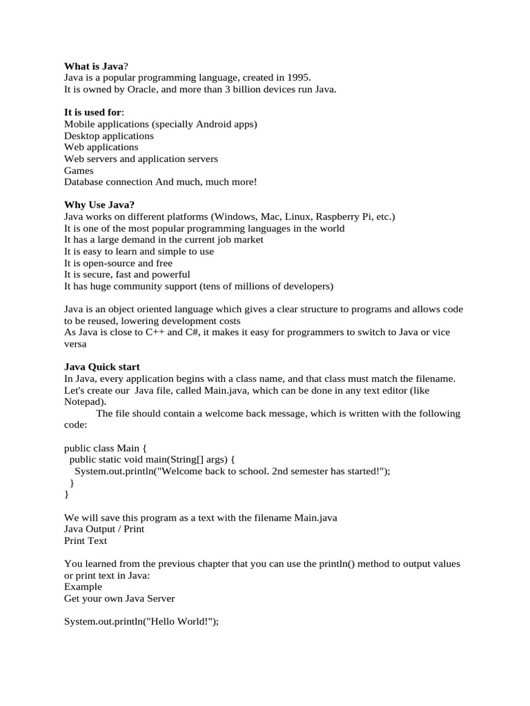 or print text in Java: