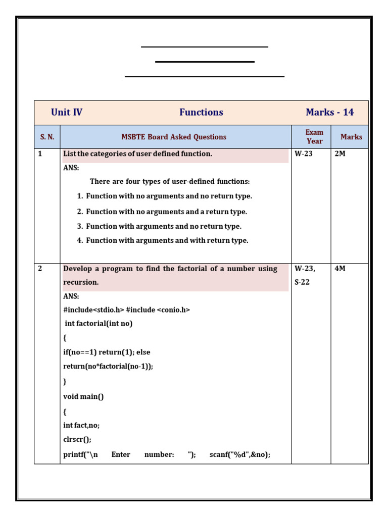 2 Develop a program to find the factorial of a number using W-23, 4M