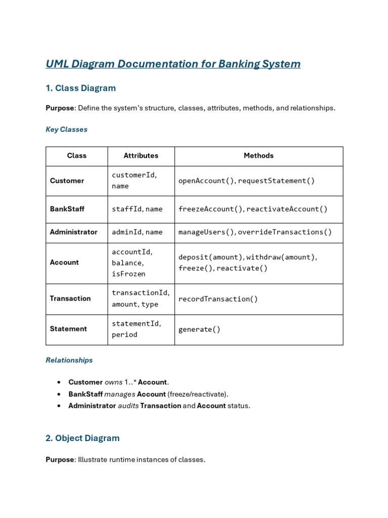 UML Diagram Documentation for Banking System