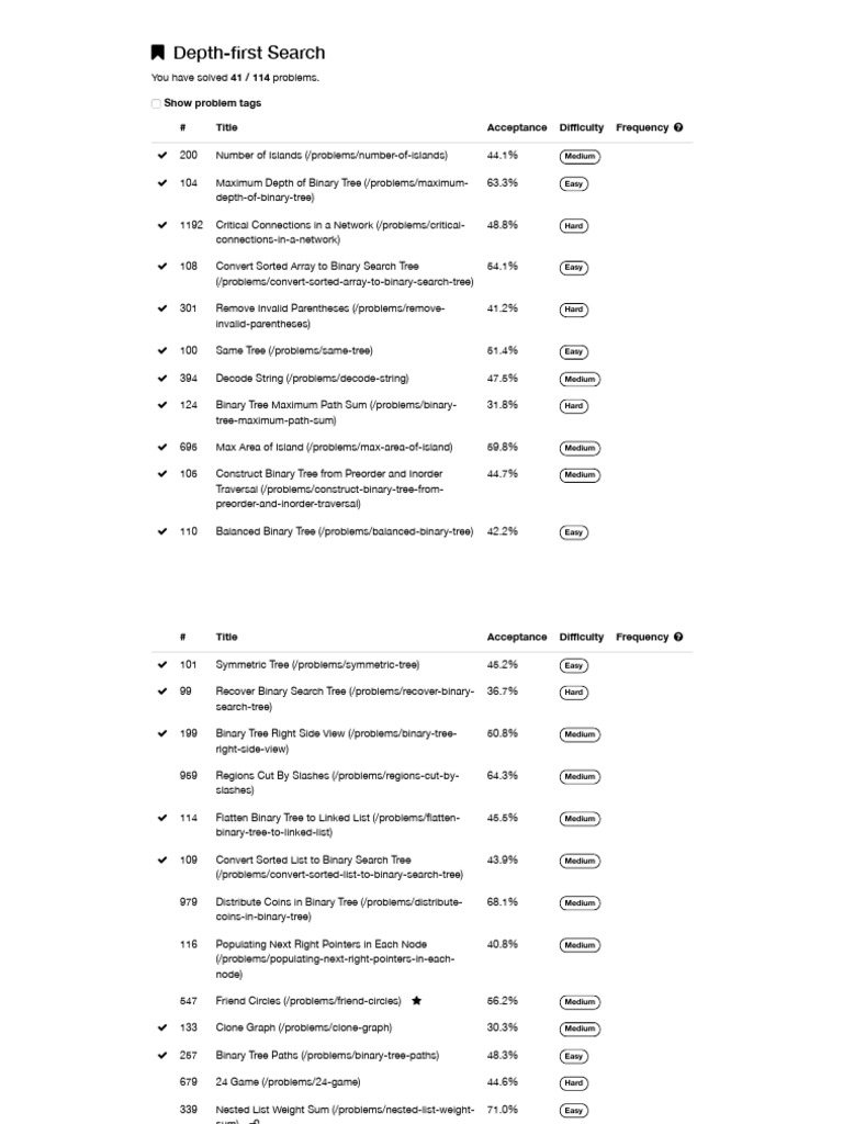 113 Path Sum II (/problems/path-sum-ii) 43.5% Medium