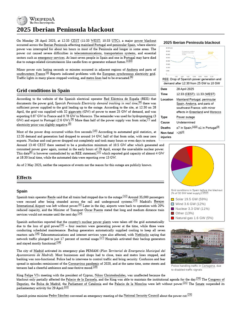 theiet.org/2025/04/29/spain-blackout-underscores-urgent-need-v 77. Jones, Mared Gwyn (29 April 2025). "Iberian blackout sparks
