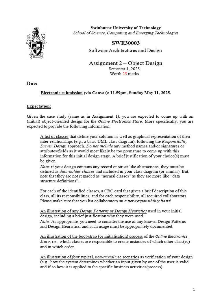 Subject Code: SWE30003 Unit Title: Software Architectures and Design