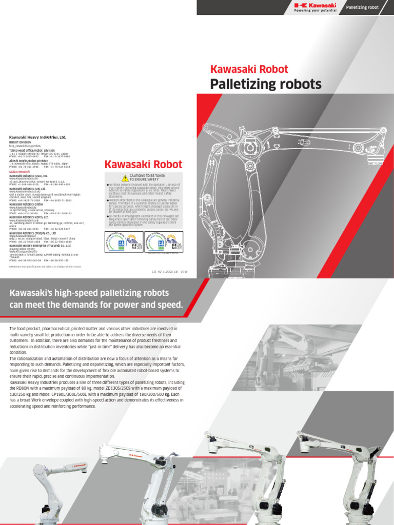 Kawasaki Heavy Industries produces a line of three different types of palletizing robots, including