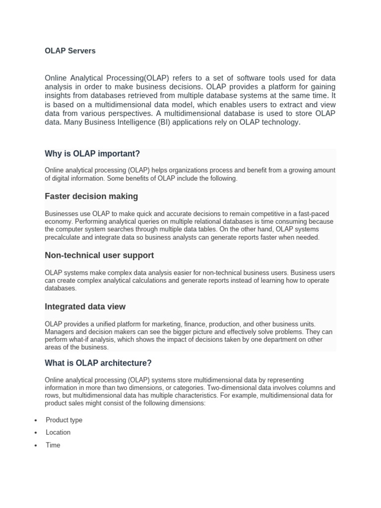 Online analytical processing (OLAP) helps organizations process and benefit from a growing amount