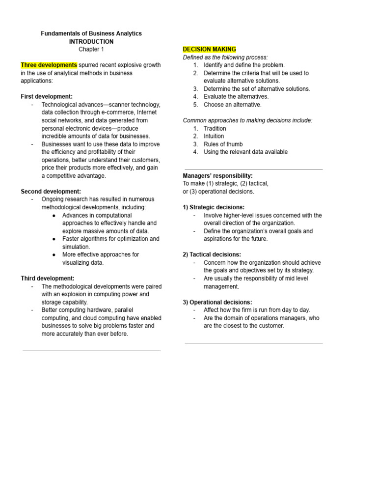 in the use of analytical methods in business 2. Determine the criteria that will be used to