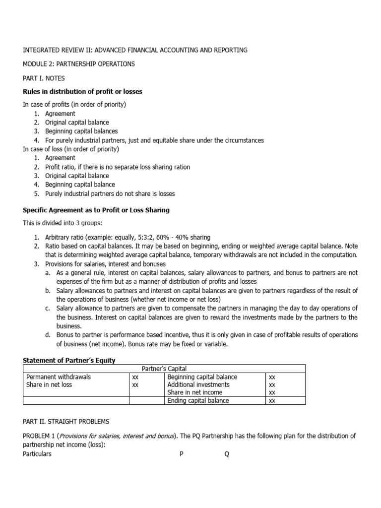 PROBLEM 1 (Provisions for salaries, interest and bonus ). The PQ Partnership has the following plan for the distribution of
