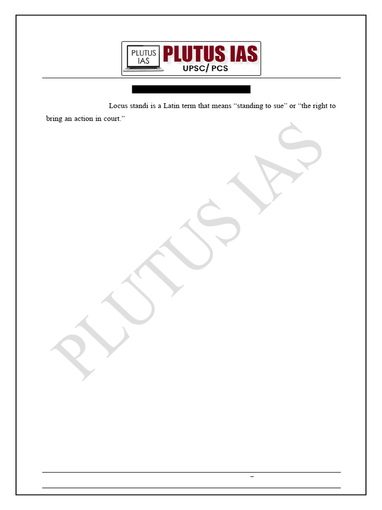 LOCUS STANDI: Locus standi is a Latin term that means “standing to sue” or “the right to