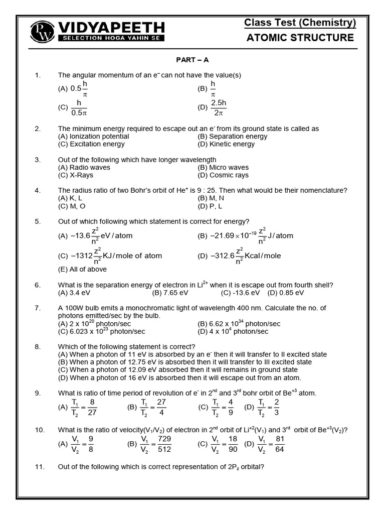 9. What is ratio of time period of revolution of e- in 2nd and 3rd bohr orbit of Be+3 atom.